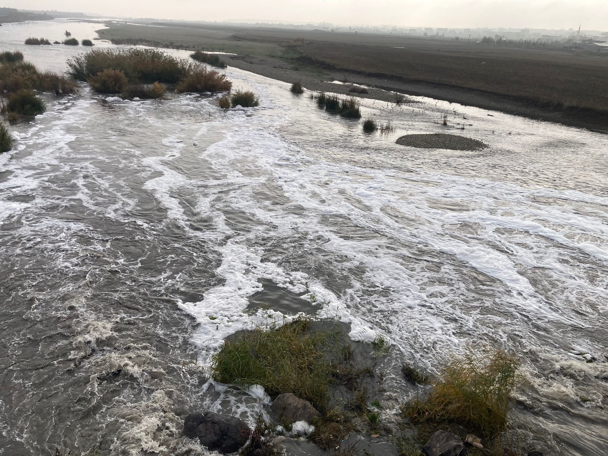 Diyarbakır’ın Bismil ilçesinde, Dicle Nehri’nin ilçe girişindeki köprü çevresinde nehir yüzeyinde oluşan köpüklenme nedeniyle şikayetler arttı. Nehirdeki köpüklenmeyi inceleyen Biyoçeşitlilik ve Çevre Uzmanı Prof. Dr. Ahmet Kılıç, Dicle Nehri’nin hem bölge hem de ülke açısından büyük öneme sahip olduğunu belirtti.